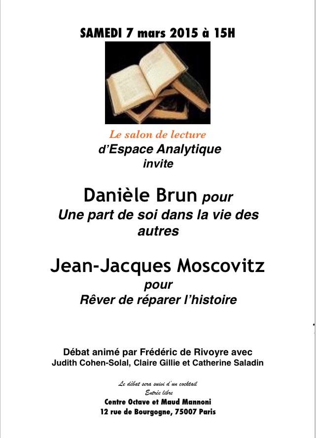 SAMEDI 7 MARS 2015 à Espace Analytique 12 rue de Bourgogne, Paris 7